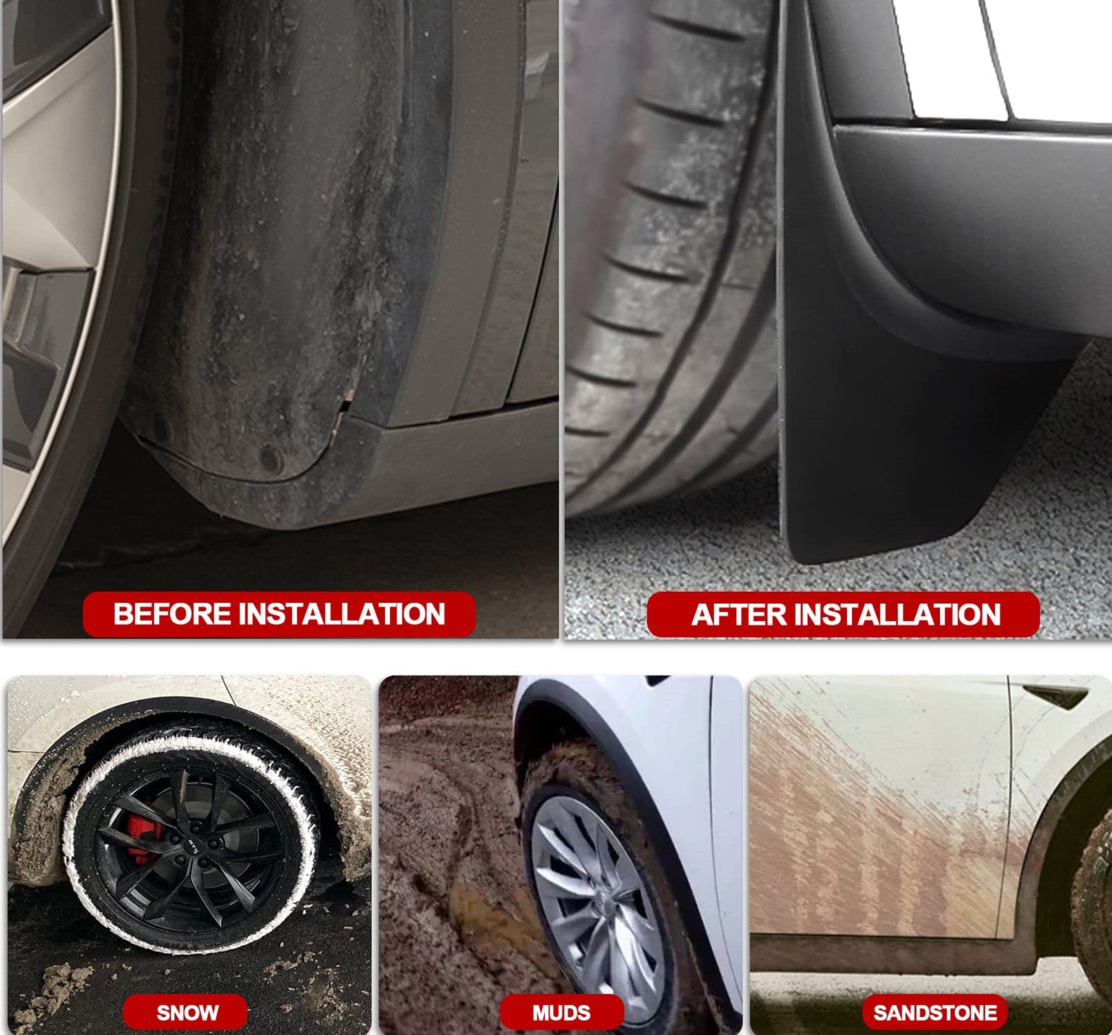 Front Rear Fender Mud Splash Guard (Set of 4) for Tesla Model Y